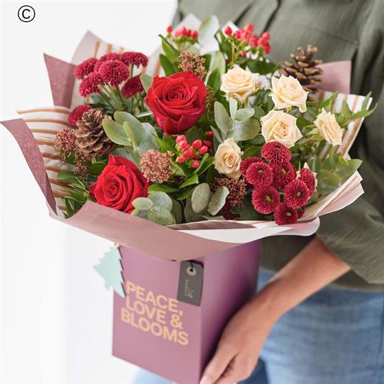 Small but perfectly formed, this classic Christmas gift box will feature gorgeous blooms in festive shades.
