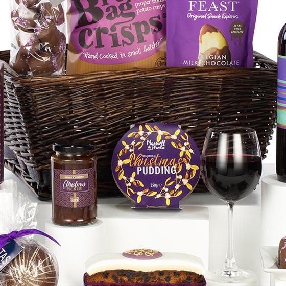 Immerse yourself in the sumptuous flavours of the Maxwell & Franks Iced Fruit Cake, exquisitely suited for sharing cherished moments with your nearest and dearest. Delight in the unparalleled Orchard Preserves Pickle, elegantly ensconced in a Purple and Gold jar, imparting an air of refinement to your festive repasts.