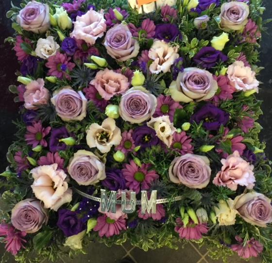 A beautiful tribute using a mix of beautiful seasonal flowers, please call if you would like another colour theme.