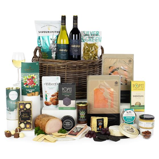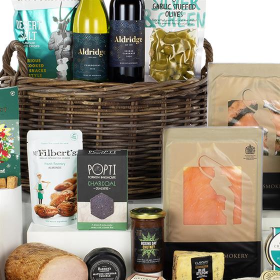 Treat your sweet tooth to Linden Lady's Chocolate Selection and Copperpot's Festive Spiced Fudge. Then, delight in the rich flavours of Long Clawson Blue Stilton and the creamy texture of Odysea Houmous. Complete your gourmet experience with a variety of artisanal crackers, cheeses, and savoury snacks, including Popti Cornish Bakehouse's Charcoal Crackers, Quicke's Devonshire Red Clothbound Cheese, and Savoursmiths Desert Salt Potato Crisps.